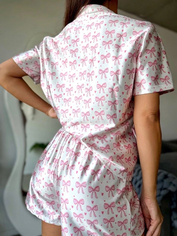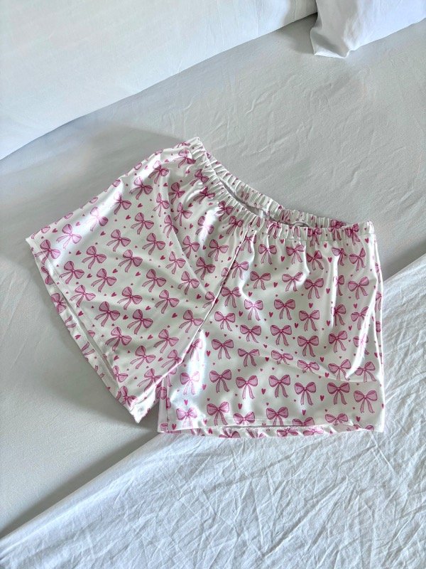 Estampa de moños y corazones en tonos rosados sobre fondo claro 💕🎀