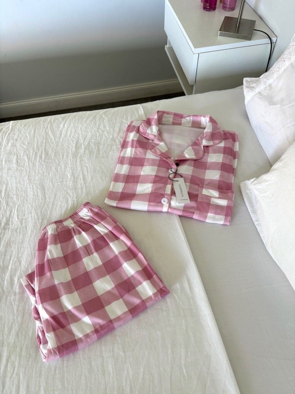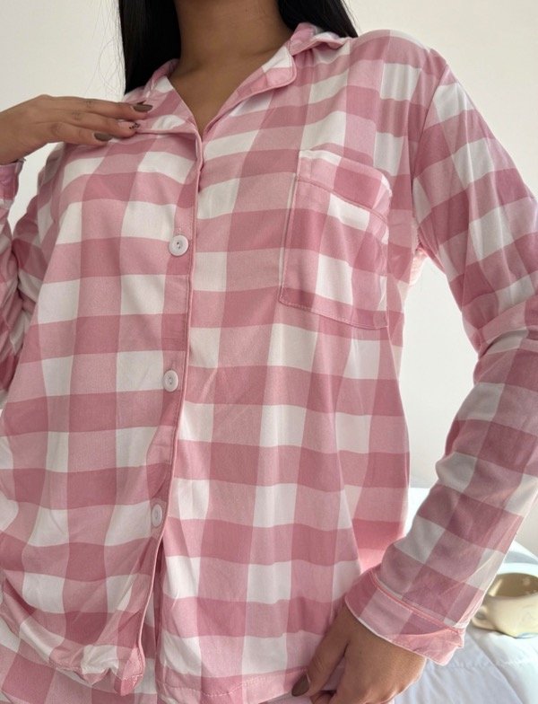 Dulce, cómodo y femenino, este conjunto de dos piezas es perfecto para tus momentos de relax. Confeccionado en tela suave y respirable, su diseño a cuadros aporta un toque romántico y moderno a la vez.