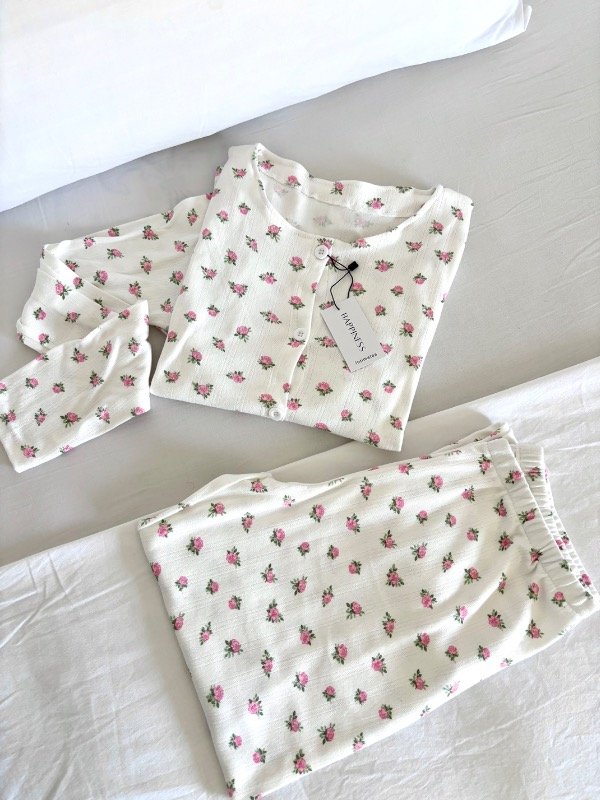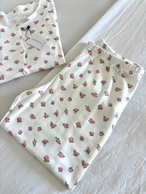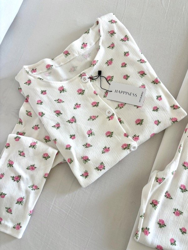 Descubri la elegancia y comodidad del Pijama Rococo, confeccionado en exclusivo morley jacquard, un tejido de alta calidad que aporta suavidad y durabilidad con estampa de mini rosas 🌷