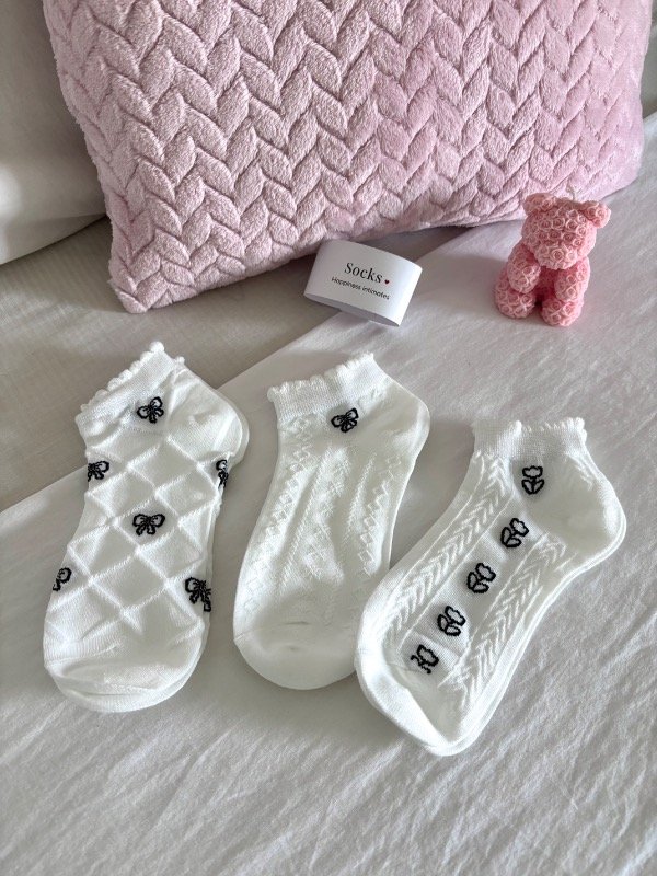 Incluye 3 pares de medias cortas con diseños delicados que enamoran a primera vista. Ideales para sumar un toque cute a tus outfits de todos los días o para acompañar tus momentos de relax en casa.