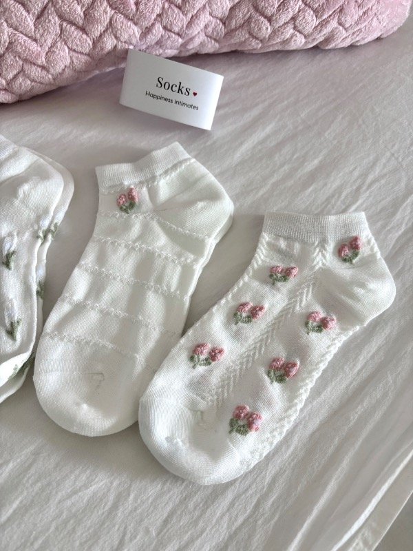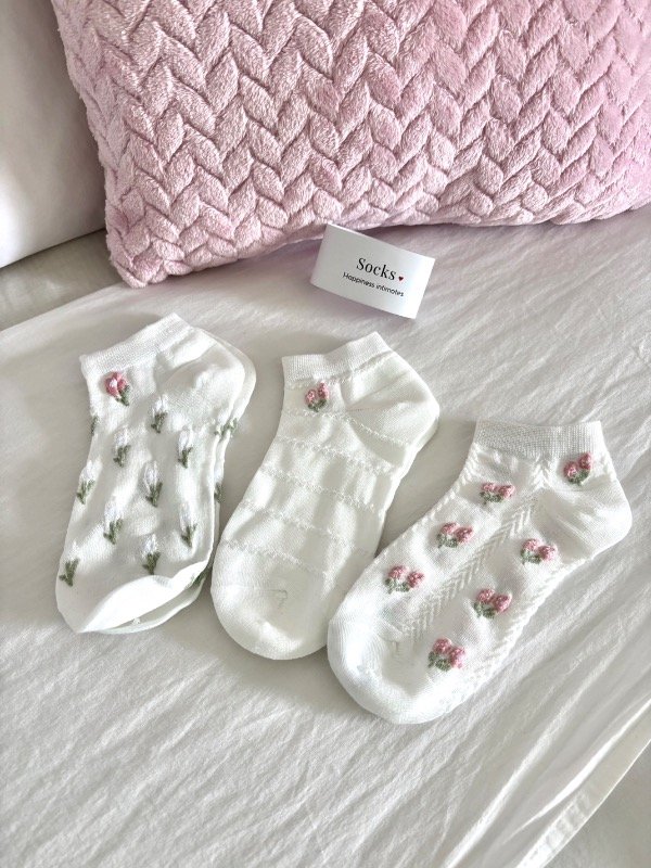 Incluye 3 pares de medias cortas con diseños delicados que enamoran a primera vista. Ideales para sumar un toque cute a tus outfits de todos los días o para acompañar tus momentos de relax en casa.