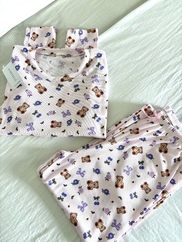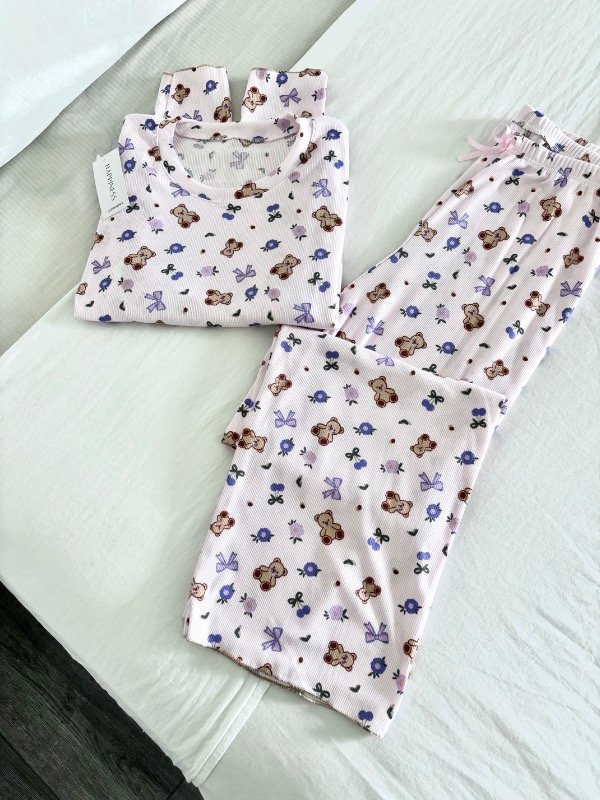 Nuestro pijama Ositos está diseñado para acompañarte en tus momentos más lindos del día. Confeccionado en tela morley suave, con un delicado print floral que transmite calma y feminidad.